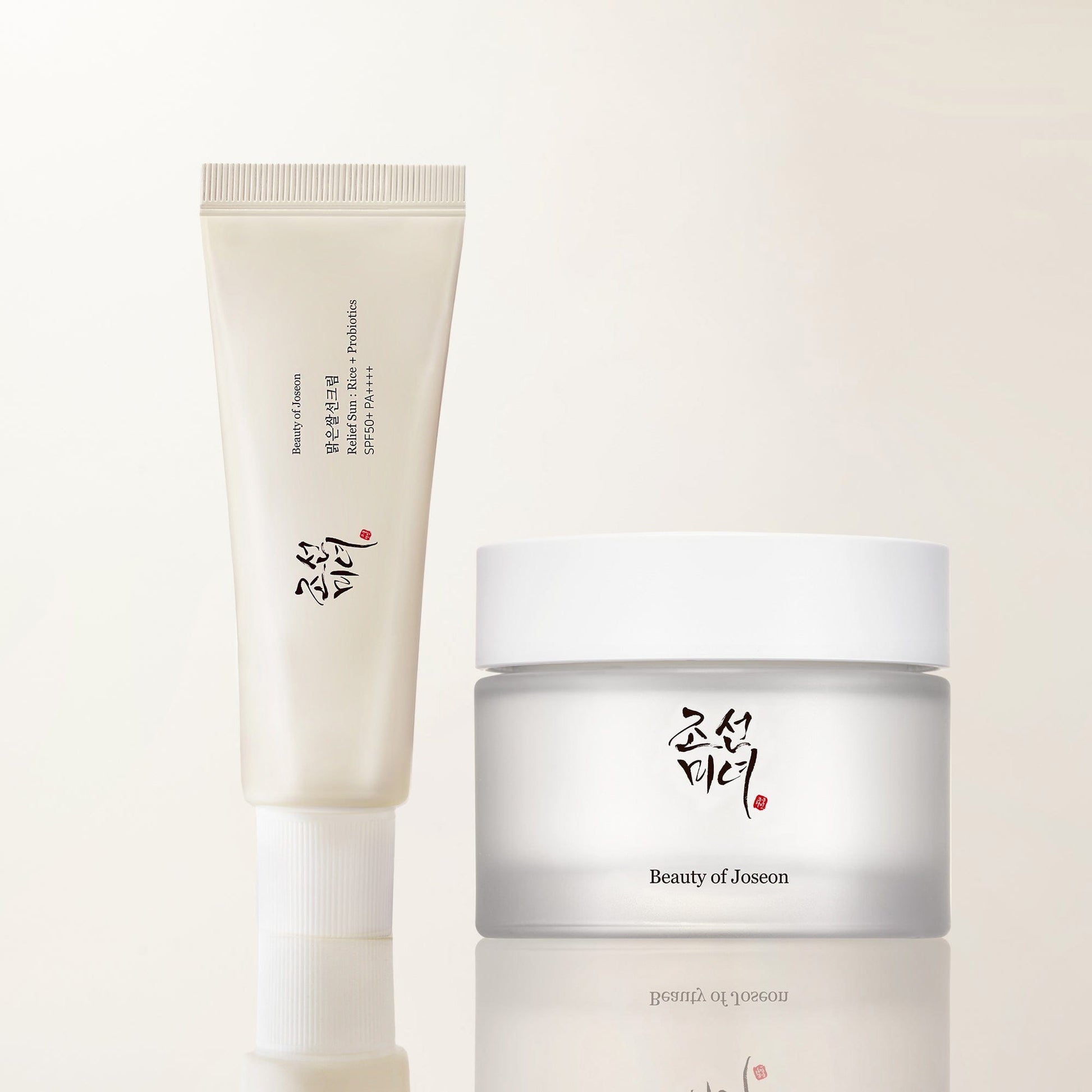 A duo of best sellers that has your complexion covered from morning to evening. Includes our iconic Relief Sun : Rice + Probiotics sunscreen and Dynasty Cream.